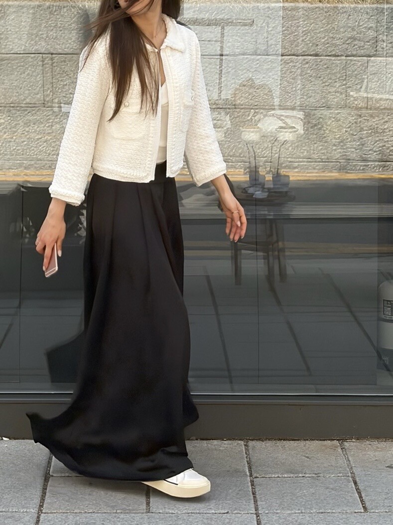 코디 활용도는 말할 것도 없어요. 수수 메이드 새틴 팬츠와 매치하면 완벽한 '하객룩'이나 '오피스룩'이 완성되고, 평소 즐겨 입으시는 츄리닝 팬츠에 툭 걸치면 믹스매치 매력이 돋보이는 세련된 데일리룩이 됩니다.