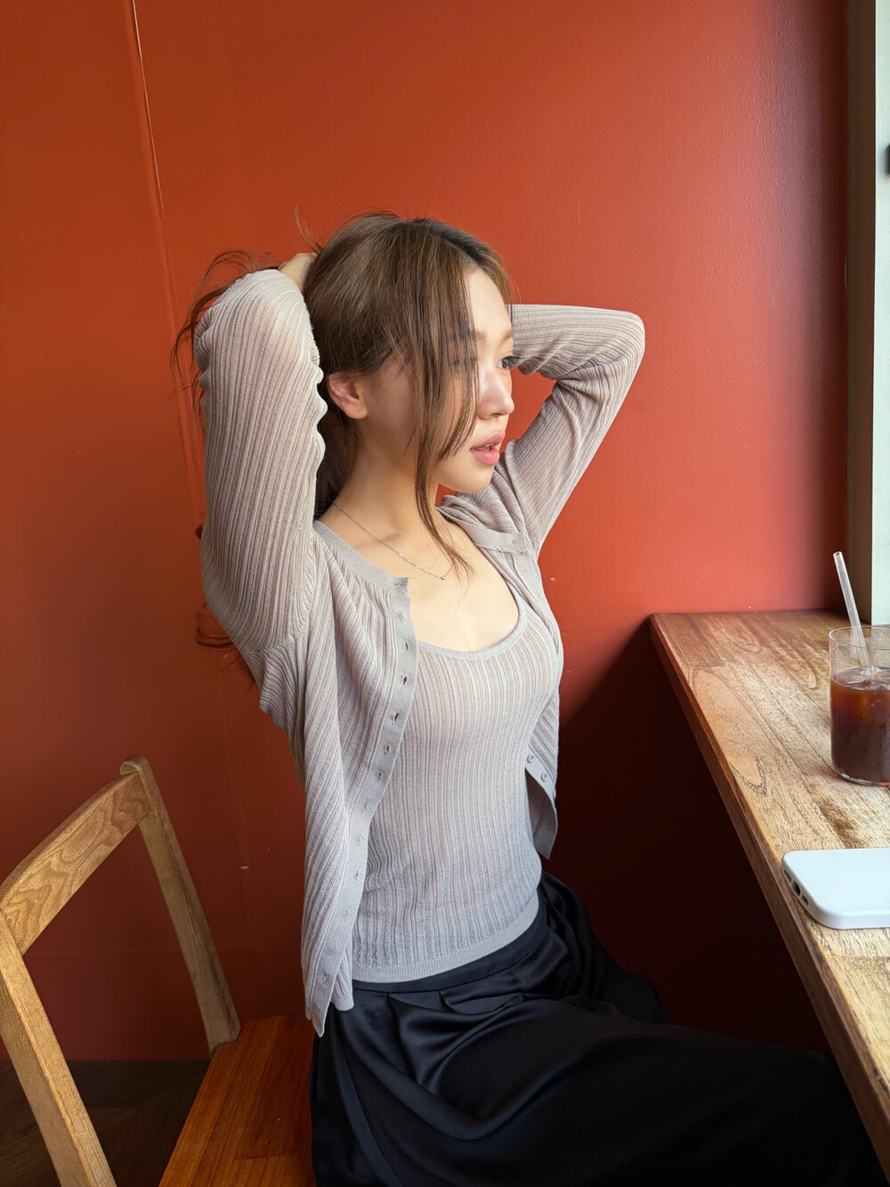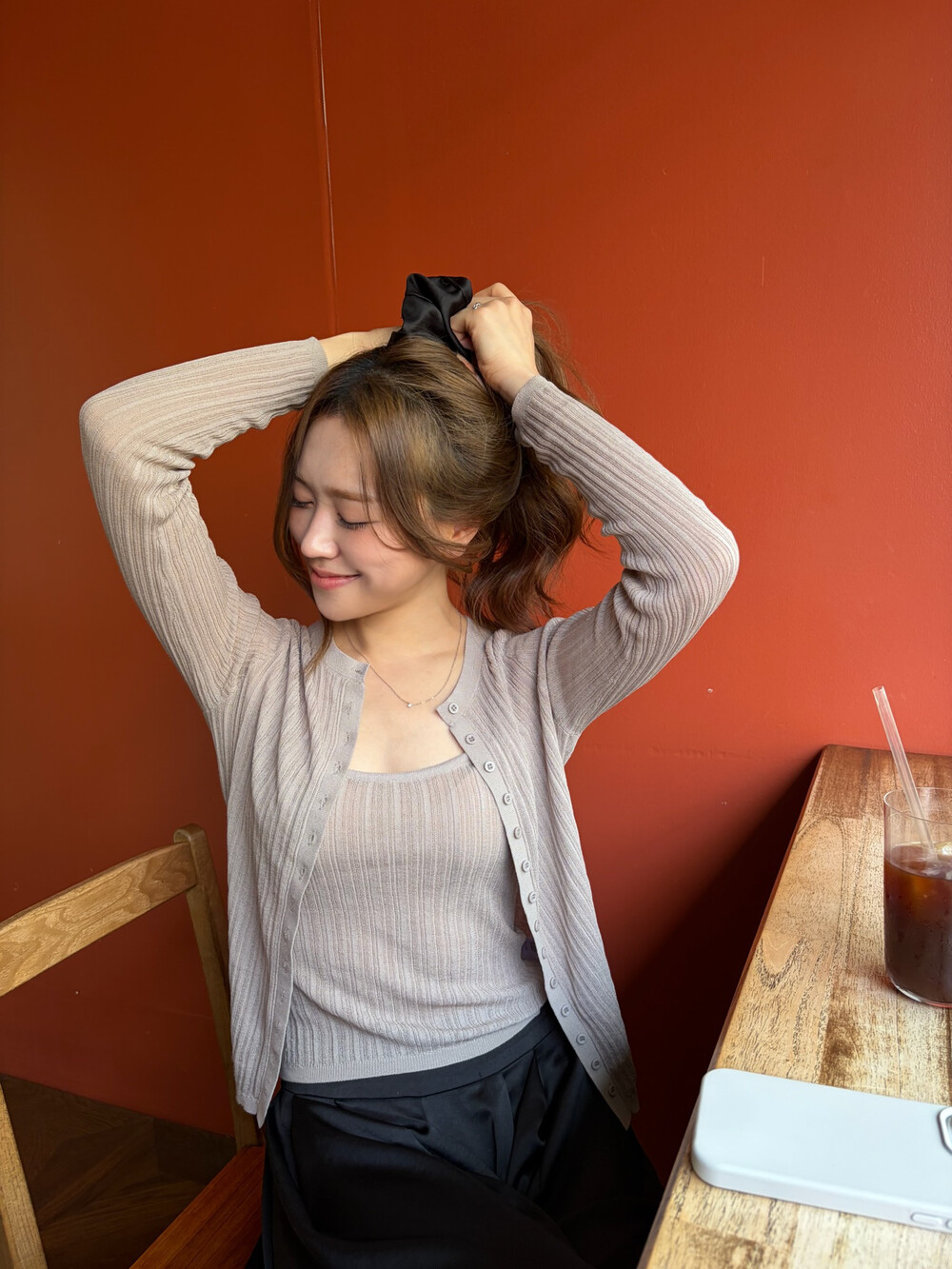 핏, 소재, 컬러, 그리고 속옷 끈 노출까지 완벽하게 잡아낸, 수민이 강력하게 셀렉한 가디건 세트입니다.